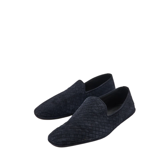 BOTTEGA VENETA INTRECCIATO SUEDE SMOKING SLIPPERS "Navy"