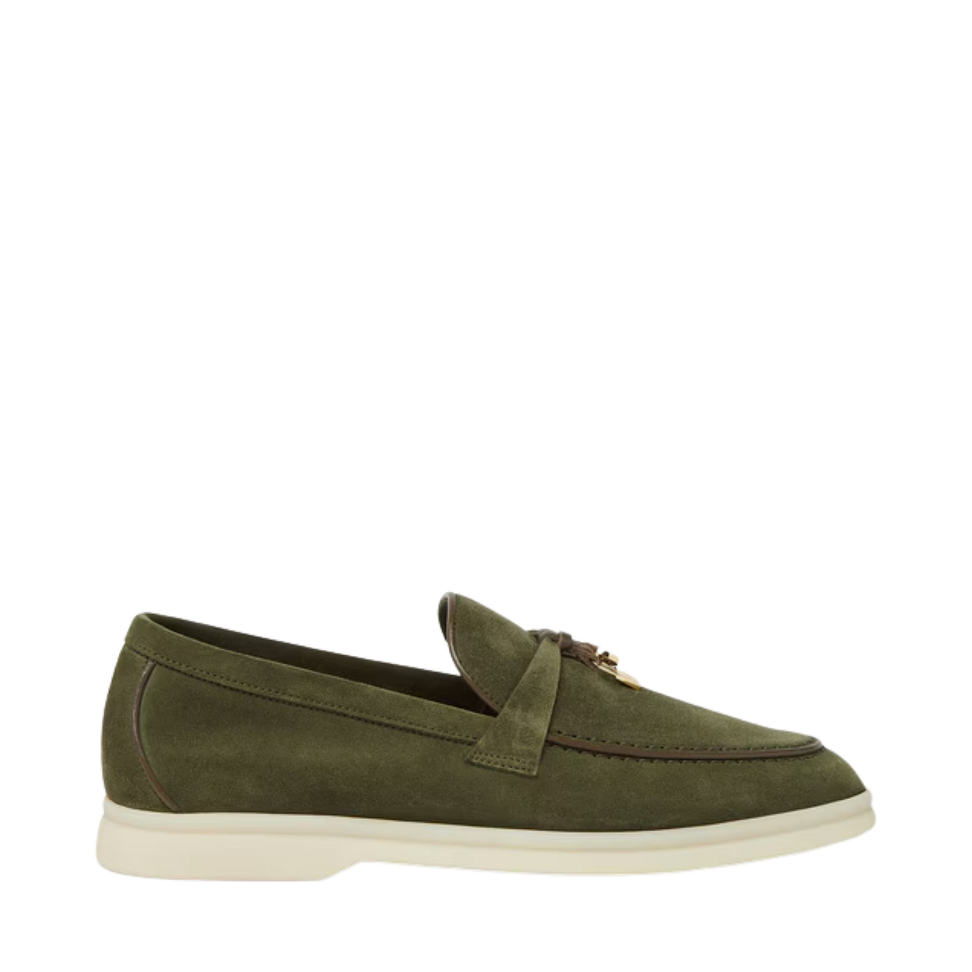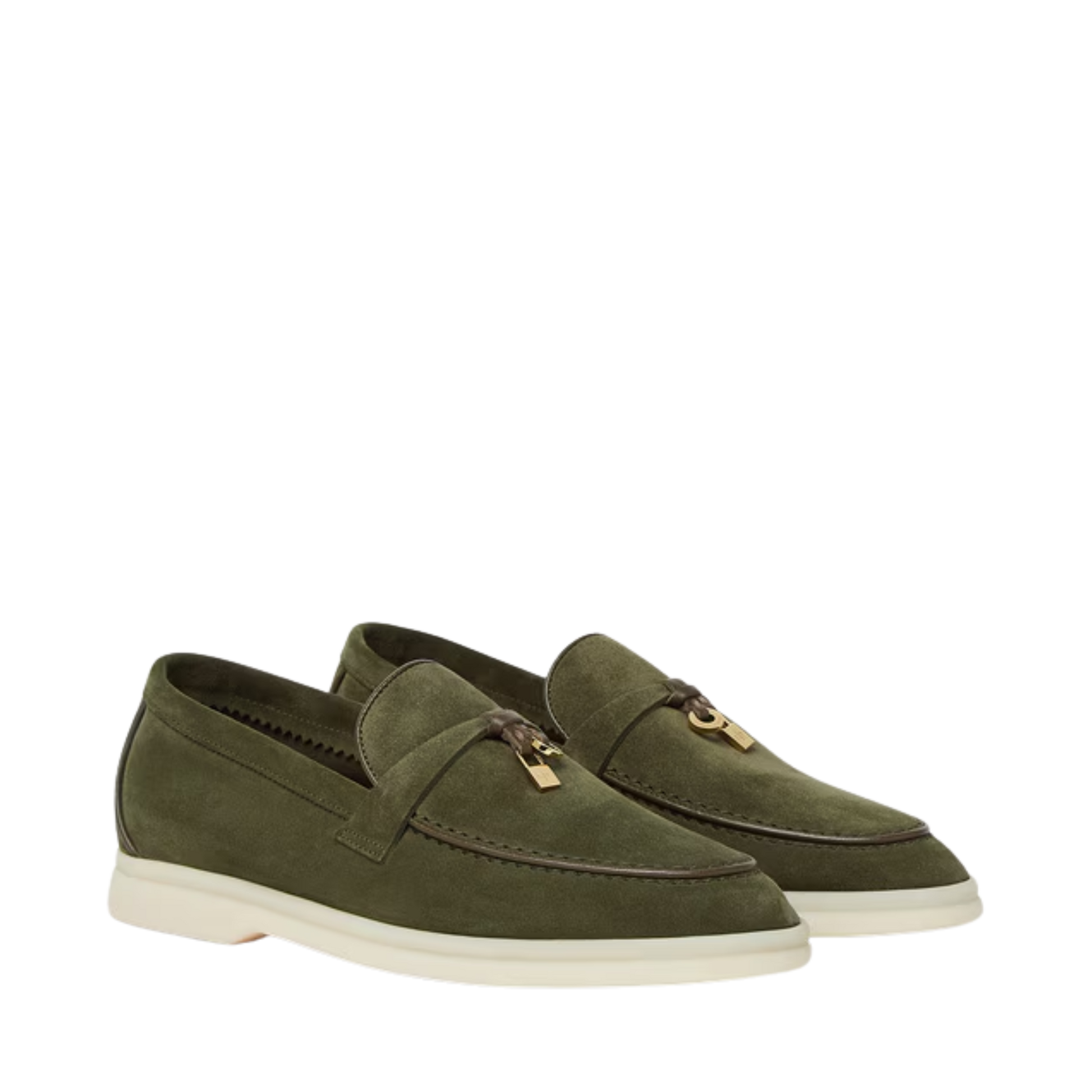 Loro Piana summer charms walk loafers suede Ribbon Green (518V)